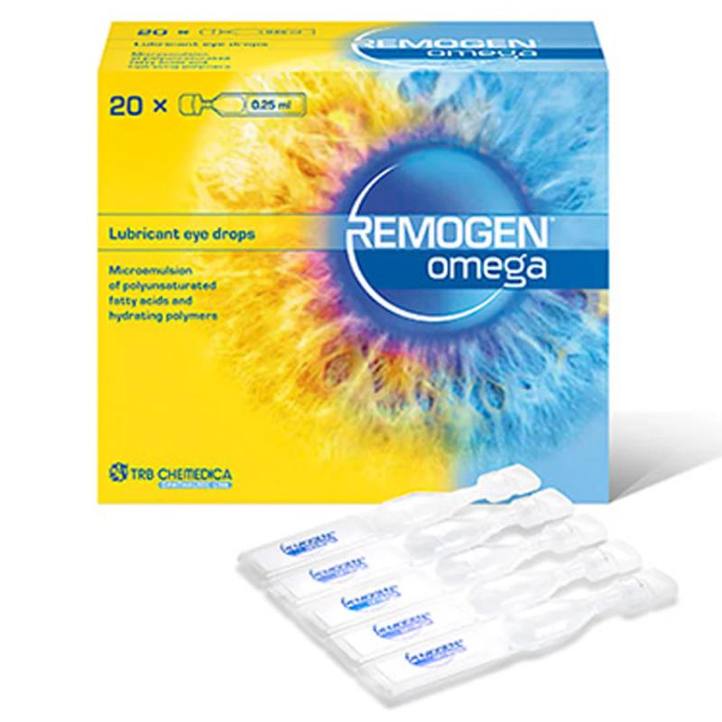 Contra-Indications/Cautions Hypersensitivity to product/class/component. "Do not touch the tip of the opened container and do not touch the surface of the eye with tip of the opened container. Any solution not used immediately after opening must be discarded. Otherwise the sterility is no longer guaranteed and this may be associated with a risk of infection. Do not use REMOGEN® OMEGA if the aluminium pouch or the containers are damages. Store between 2˚C and 8˚C! Do not use REMOGEN® OMEGA after the expiry date indicated on the container and the folding box. This period refers to the product kept in the refrigerator (2˚C – 8˚C). Outside the refrigerator, the product has a shelf-life of 3 months if stored at a temperature below 25˚C and in its original packaging. Keep the product away from light, storing the singe-dose containers in the aluminium pouch. If discomfort persists while using REMOGEN® OMEGA consult a clinician. Keep out of reach of children." Pregnancy/lactation - EDDB. Advise pt to read and understand all accompanying product information before first use - EDDB. Pt to wait at least 15 minutes between two different eye drops. |