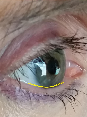 Our third test quantifies the inflammation of the conjunctiva. TFOS has recently highlighted inflammation with dry eye syndrome. It is based on the fact that conjunctival inflammation is always accompanied with conjunctival thickening due to inflows of inflammatory bodies and oedema. It means that instead of smoothly sliding over the eye, the eyelid contact is less than perfect. It is a probable cause of lid wiper epitheliopathy. We noticed that the lower lid tear meniscus gets smaller on upward gaze if the conjunctiva is inflamed and the drop is greater and in proportion with tear hyperosmolarity.